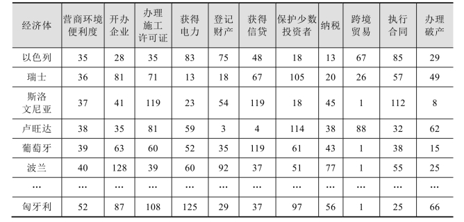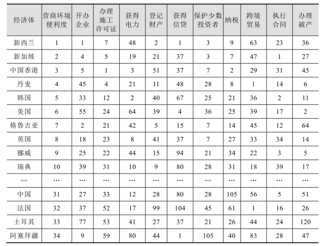 表4-4 2020年全球营商便利度排名