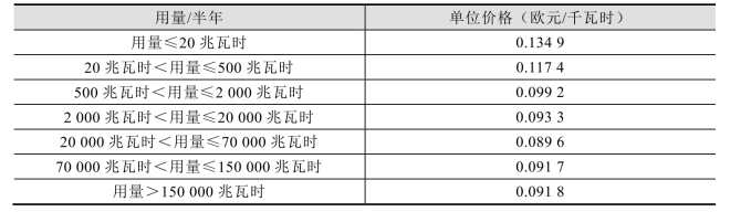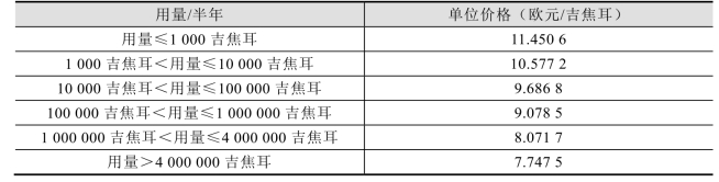 匈牙利电价分为居民用途和工业用途,其中工业用电价格根据市场浮动,平均价格约0.1美元/度。天然气价格也有不同,民用天然气直接按下表计价,工业用天然气由企业与油气公司通过签订长期供货协议确定。水价不分民用和工业用途。详细情况见表4 - 5,表4 - 6,表4 - 7和表4 - 8。