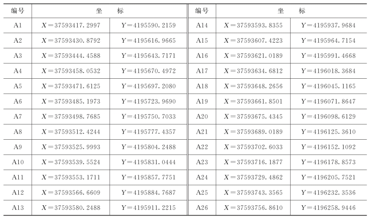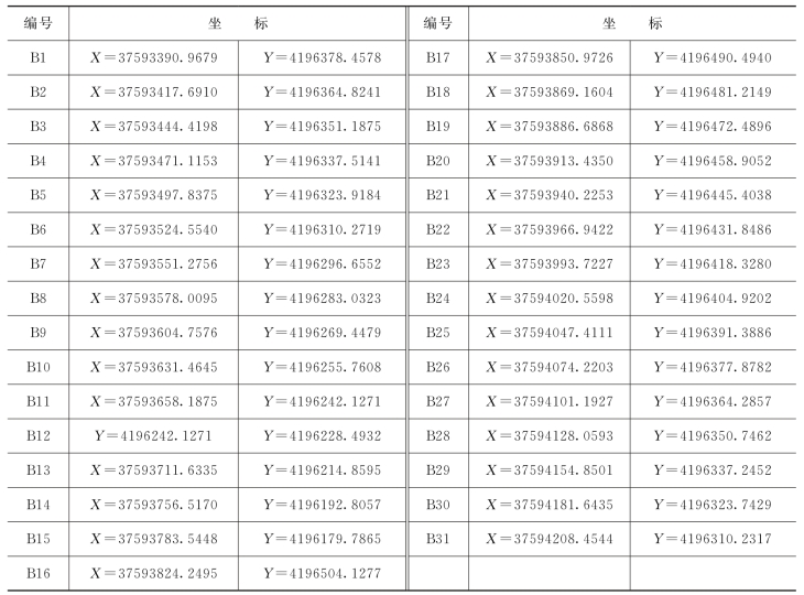 A线各点坐标值见表2.1。B线各点坐标值见表2.2。