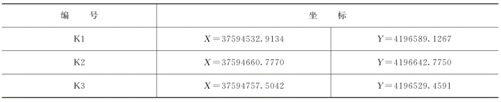 为方便对采煤沉陷区的建(构)筑物进行变形监测,在沉陷影响区以外布设了3个控制点,其点位可根据地形来选择,尽可能视野开阔。控制点布设示意图如图2.2所示。控制点编号与设计坐标见表2.3。