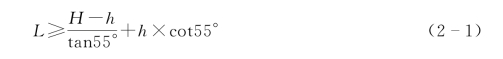 由于22618工作面所采2.3号煤层属于近水平煤层,所以走向观测线(即A线)拟布置在工作面的上方正中央处;为保证倾向观测线位于走向方向的充分采动区域内,倾向线的位置见式(2-2):
