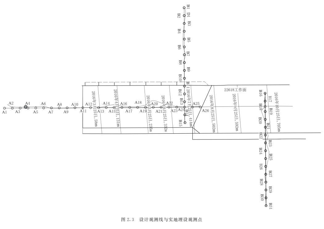 根据设计方案和实际地形,对该项目地表移动观测站进行了实地埋设,其结果如图2.3所示。