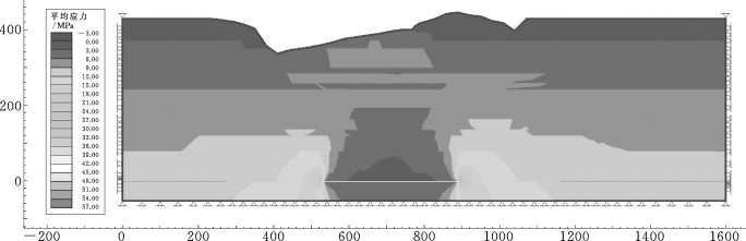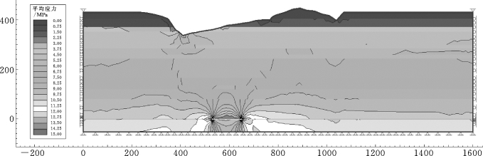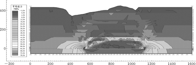图6.5 22618工作面推进到600m时覆岩与地表平均应力场发育