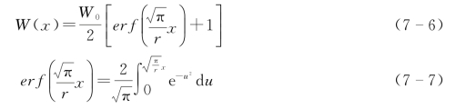 式(7-6)即为倾向达到充分采动时,走向半无限开采引起走向主断面的地表移动变形预计公式。