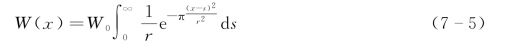 令采空区煤层平均开采厚度为m,则采空区被采空区覆岩沉陷填充,如果为水平采空区,采空区上顶板的沉陷量为mq,其中q为下沉系数,下沉系数一般比1小;若煤层为倾斜,倾角为α,上顶板收到倾角的影响,其下沉量为mq cosα。对于地表任意一点,假设其横坐标为x,沉陷量W(x)为单位开采厚度所引起该点的沉陷量W u(x)的mq cosα倍。若令
