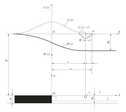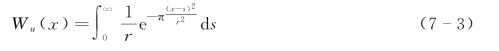 如果工作面上开采单元的X轴的坐标为s,采空区地表任意一点的X轴坐标为x,可以推导出地表任意一点的沉陷量为W e(x-s),用(x-s)替代x,可以推导出该单元开采后地表产生的沉陷量。因此,得出半无限开采引起的地表任意一点的沉陷W u(x)为