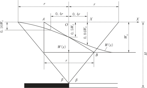由于半无限开采的影响,除了沉陷量,地表移动变形范围在±r之内。因此称r为主要影响半径,如图7.3所示。