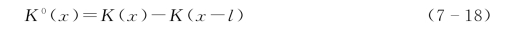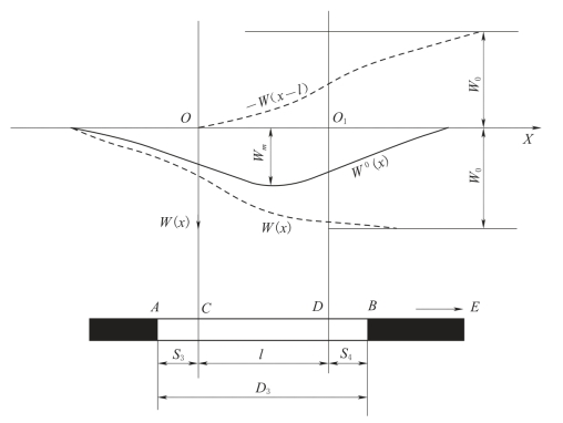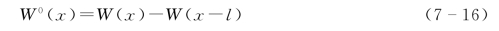 如图7.5所示,当开采C点到x=+∞的E点之间的全部煤层,则引起的地表下沉W(x)可以采用半无限开采的计算式(7-8)~式(7-12)求得;若开采D和E之间的煤层,其引起的地表下沉也可以采用式(7-8)~式(7-12)求得;但是由于纵坐标的平移,要用x-l值代替x值代入式(7-8)~式(7-12)中进行计算,即其引起的地表下沉可表示为W(x-l)。计算边界CD之间的煤层的开采可以认为等效于上述2个半无限开采之差,则其引起的地表下沉为W(x)-W(x-l)。对于其他移动和变形计算,也可以作出同样的分析。