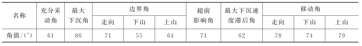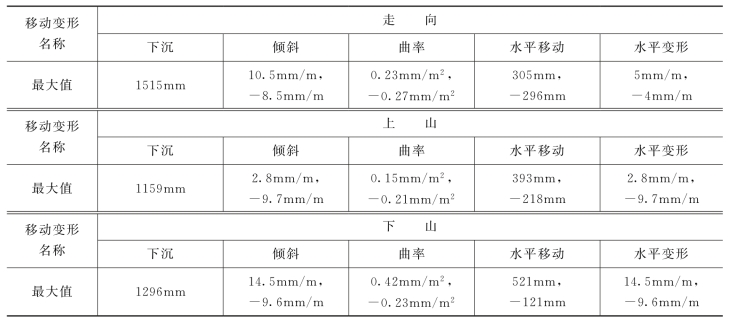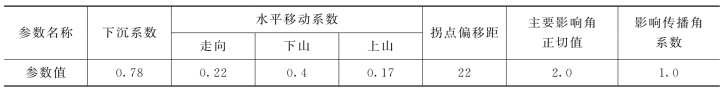 根据对镇城底矿22618工作面的地表岩移观测结果,通过分析观测数据,获得了该黄土沟壑山区地表开采沉陷的移动变形规律和概率积分预测参数,见表8.1~表8.3。
