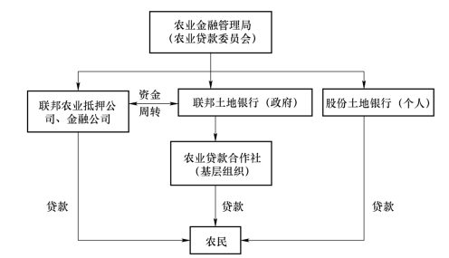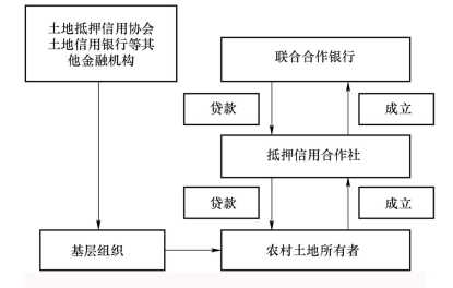德国土地抵押制度实行由下而上的建构模式,有土地抵押信用合作社,自下而上又建立了农业地产抵押银行。抵押银行是公共机构,由德意志联邦政府确定经营范围,基本任务是为促进农业、农村发展提供资金支持。制度比较完备,对抵押主体(农民、信用合作社、土地银行)间的权利、义务以及贷款对象、程序、数量额度、划款方式、利率等方面规定十分详细;抵押服务体系完备,表现在政府以农业土地税收作为抵押银行资本金,并为抵押银行提供信用担保,免除经营所得税和工商税;另外还设有合作银行,农民可监督合作银行,但同时在合作银行发展不好时,农民也有义务缴纳合作基金。其农地金融主体主要包括农户、土地抵押信用合作社及其联合合作银行,主要抵押贷款对象是愿意从事农业生产并有土地所有权的农民,其采用直接贷款方式,即贷款直接给农民,抵押银行的资金来源除资本金外,全部通过发行商业票据和金融债券等市场方式解决。[61]
