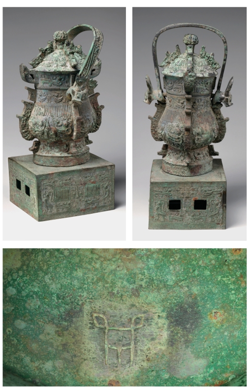 34.3厘米×24.1厘米×22.9厘米.是一种用来盛酒的酒器。西周青铜卣制作于3000年前西周早期,器盖与器身的两面皆神面,神面头有双角,双睛圆鼓,直鼻小耳,大眼暴张,龇出两颗獠牙,威猛之中略带笑意。可见,早在西周时期,酒文化已在贵族阶层盛行。