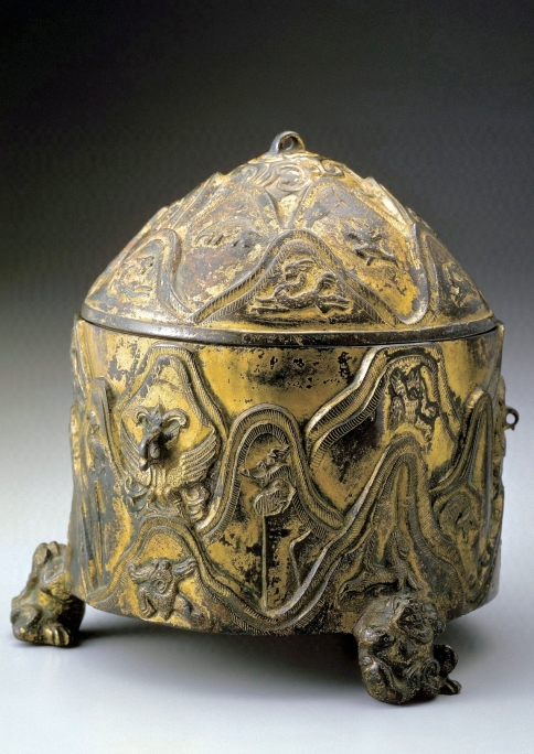东汉 铜鎏金山纹兽足樽 樽是汉代主要的盛酒器。