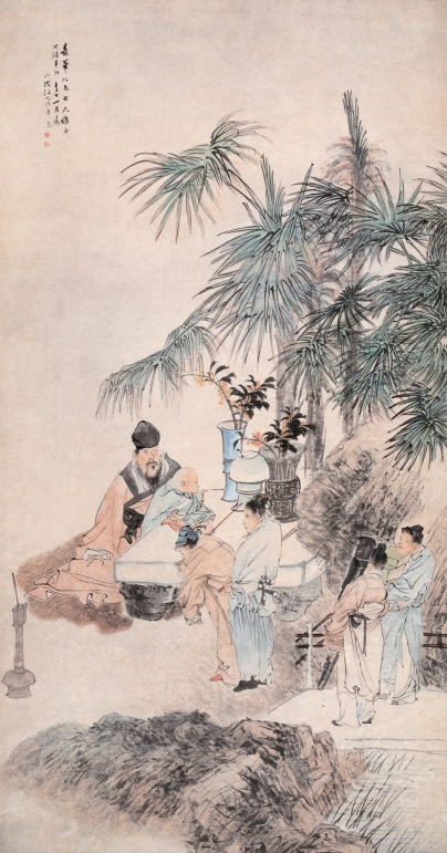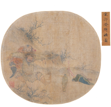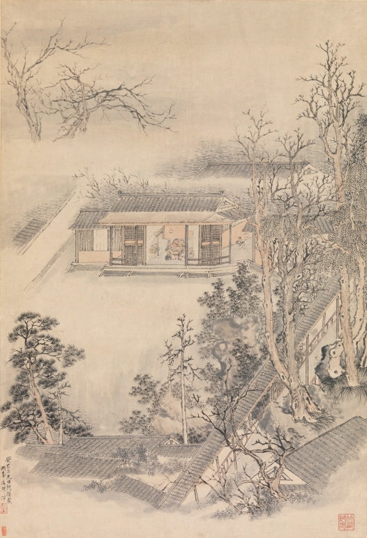 80厘米×54.6厘米。描绘扬州私人园林的风景画:偌大的宅院被松柏杂树所包围,房屋排列有致,几人正在屋内饮酒清谈。大概是秋冬时节,叶木已然飘零,庭院显得寂静而空旷。筱园建于康熙末年,位于二十四桥畔,滨湖而筑,凿池引水,修亭筑榭。春有芍药夏有荷,秋有桂花冬有梅,栽松种竹,可谓四时之景俱佳。图中几位文人在此环境中饮酒、畅谈,表现了古人对饮食环境的要求。
