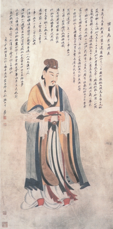 蜀汉建兴三年(225年)秋,诸葛亮七擒七纵收服孟获后班师回朝。大军一路顺畅,但行至泸水时突然狂风骤起,乌云密布,河面上被掀起了滔天巨浪。一向成竹在胸的诸葛亮见此情形也没了主意,便去请教对这一带非常了解的孟获。孟获说,这里常年战乱不休,不知道死了多少人,那些冤魂化作妖魔鬼怪常常出来作祟,这反常的天气便是源于此,要过此河,就必须用七七四十九颗人头再加上黑牛白羊祭拜。诸葛亮听后面露难色,今日班师回朝,怎么能妄开杀戒呢?