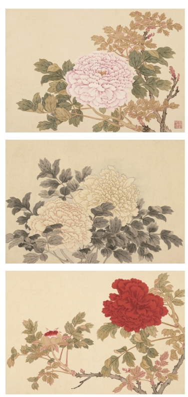 钱维城,初名辛来,字宗盘,又字幼安,号幼庵、茶山,晚年又号稼轩、武进。其所绘之牡丹,刻画极为精细,枝叶先勾线再施色,气质清丽。虽然是艳丽的色彩,但渲染出来却十分素雅,体现了钱维城的审美趣味。牡丹是中国的国花,它象征着幸福、和平、繁荣、昌盛、富贵、吉祥。除了观赏外,牡丹也是可以入药和食用的,药用时,以根皮入药,称牡丹皮,又名丹皮、粉丹皮、刮丹皮等,系常用凉血祛瘀中药。丹皮性微寒,味苦、辛,可清热凉血,活血化瘀。食用时,中国不少地方有用牡丹鲜花瓣做牡丹羹,或配菜添色制作名菜的,牡丹花瓣还可蒸酒,制成的牡丹露酒口味香醇。