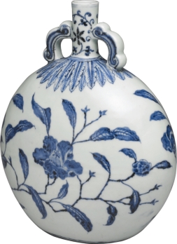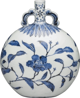 明代永乐年间 青花山茶花纹如意耳扁壶