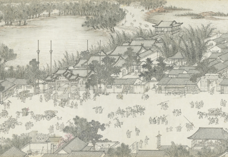 台北市“故宫博物院”藏。图中街边的茶坊写有“玉液琼浆”。茶在中国古代有很多种称谓,但“茶” 字是用得最多的名字,也即是其正名。“茶”字在中唐之前一般都写作“荼”字。“荼”字的字义很多,表示茶叶只是其中一项。由于茶叶生产的发展,饮茶的普及程度越来越高,茶的文字的使用频率也越来越高,因此,民间的书写者,为了将茶的意义表达得更加清楚、直观,于是,就把“荼”字减去一画,成了现在我们看到的“茶” 字,茶的意义此后便表达得更为清楚了。