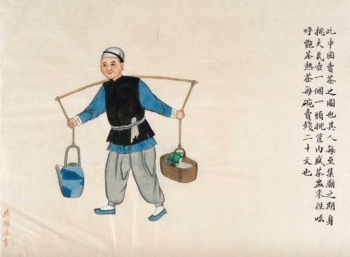 王褒的《僮约》标志着中国茶叶商业活动的开始,由此可以断定,至少从那时起,中国就有了经营茶叶的商人。伴随着茶叶种植和饮茶习俗的迅速传播,茶叶商人的数量逐渐增多,分工也日趋细致。大约在晋文帝当政时,专门经营茶水的摊贩开始出现。与此有关的记载出自《广陵耆老传》:“晋元帝时,有老姥,每旦独提一器茗,往市鬻之。市人竞买,每旦至夕,其器不减。所得钱散路旁孤贫乞人。人或异之,州法曹絷之狱中。至夜,老姥执所鬻茗器,从狱牖中飞出。”由此可以看出,这位姥姥所卖的已不是采摘的叶子,而是经过烹煮之后,可拿来一饮的茶水。从这个意义上说,这应该是中国最早的茶摊,也是后来遍布集市的茶馆的前身。