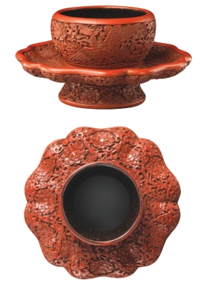 明代 永乐剔红凤穿花盏托