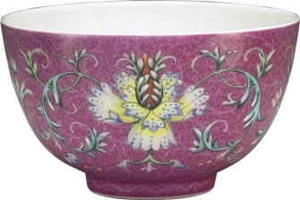 清代乾隆 磁胎洋彩红地锦上添花茶钟