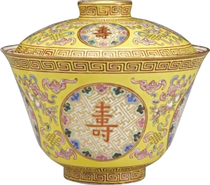 慈禧太后御用茶器。有“万寿无疆”四字。