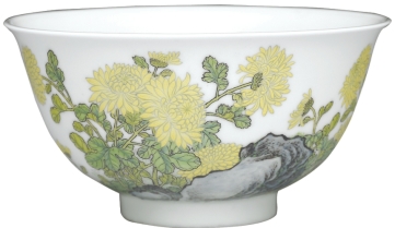 清代雍正 珐琅彩黄菊花白地茶钟