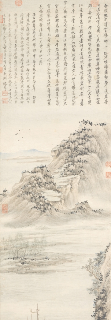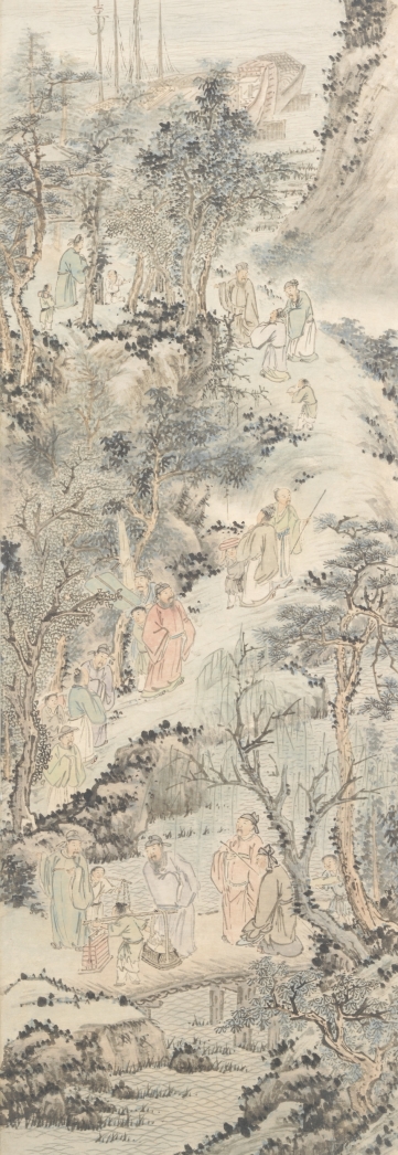 252.9厘米×44.5厘米。台北市“故宫博物院”藏。图中描述的是弘治己酉(1489年)三月十七日,吴愈调守叙州,文士友人一行十三人为之饯行赋诗的情景。