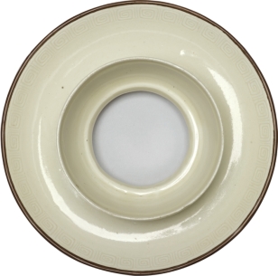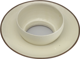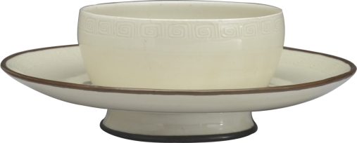 此器为典型宋代茶托形制,“形如碗带盘,中空,下有足。”南宋末周密《齐东野语》记载,宋人举茶是茶盏与茶托一起,说明在宋代,茶托是与茶盏配套使用的。根据不同造型及承嵌茶盏的不同方式,宋代的盏托大致可分为托心下凹式、圆柱上凸式、碗形托圈式(含中空式)等。