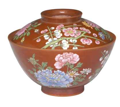 清代康熙 清宜兴紫砂胎珐琅彩四季花卉盖碗