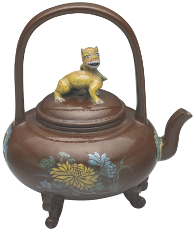 清代康熙 宜兴胎画珐琅提梁壶