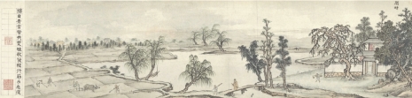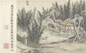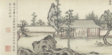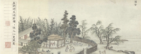 27.9厘米×1333.9厘米。台北市“故宫博物院”藏。图中展示的是明晚期文人的闲雅生活方式,内容分别为:灯一龛、高枕、礼佛、烹茗、展画、焚香、月上、主客真率、灌花、竹、摹帖、山游、薄醉、夜坐、听雨、阅耕、观史、新笋、洗研、赏雪。从图中可能领略到古代文人生活的美好及日常起居。