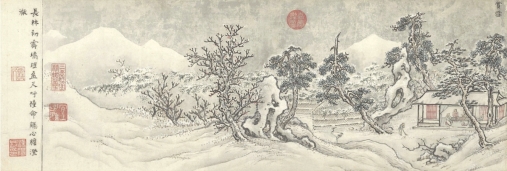 贫富是人类永久的话题,党进宅和袁安舍一富一贫,都被大雪覆盖,都不是令人满意的,只有陶家扫雪煎茶,方显得风流高出一筹。明代王九思有散曲《朝天子·扫雪煎茶》,可以说是对“扫雪烹茶”典故的曲化阐释:
