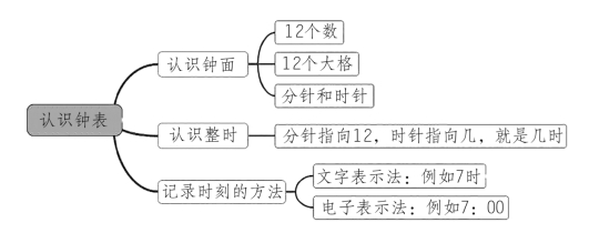 1.学会观察钟面的结构,认识电子表和钟表表达的整时,在观察与对比中会认、读、写整时。