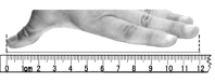 生:师傅的一拃是18厘米,因为师傅的大拇指的指尖对准“0”刻度,中指指尖对准了“18”刻度。