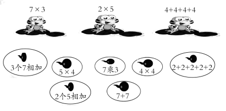 设计意图:不仅让学生感知到一道乘法算式能表示两个不同的意思,而且让学生明白连线题并不是所有的题目都有对应的答案。