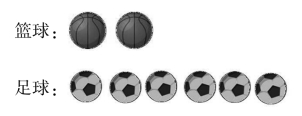 师:根据原来学过的知识比较一下,足球和篮球的个数有什么关系呢?