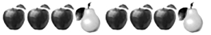 设计意图:增加的时候是3个苹果1个梨一组一组地往上加,让学生合作交流,给学生充足的思考和表达的时间,锻炼学生的思维能力和语言表达能力,培养学生的合作精神。