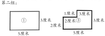 1组:这两个长方形的长和宽都相等,所以它们的周长一样。