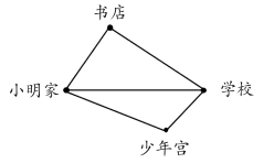 生:因为三角形的两边之和一定大于第三边,所以经过书店和经过少年宫的路都比直接到学校的路远。