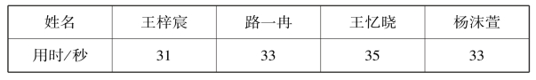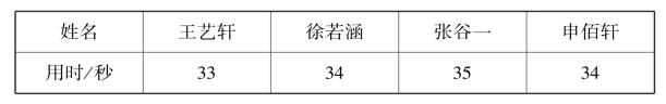 师:为了小组对抗赛,王艺轩同学每天在家坚持练习,这是她5次的成绩:35秒、34秒、32秒、30秒、34秒。她的平均用时是______秒。
