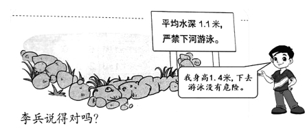 生:不对!平均水深1.1米,1.1米只是平均数,有的地方比1.1米浅,有的地方比1.1米深,甚至比1.4米深,所以有危险。
