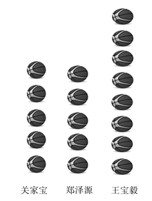师:这是咱们班三位同学定点投篮的情况,这三位同学跟同学们打个招呼吧。(出示直观图)
