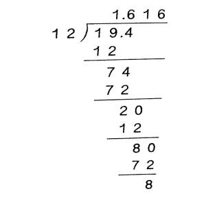我发现在计算过程中,余数( )不断重复,商的小数部分也不断重复出现数字( ),总是除不尽,我们说19.4÷12的商是( )小数,循环节是( )。