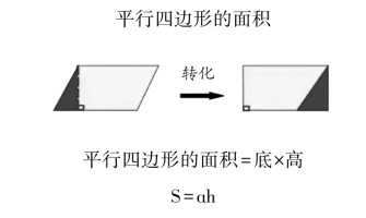 设计意图:板书设计形象直观,一目了然,强调了平行四边形面积的推导过程,提炼出学习的重点和难点,有利于学生对知识的梳理和掌握,提高学习效率,起到深化、巩固的作用。