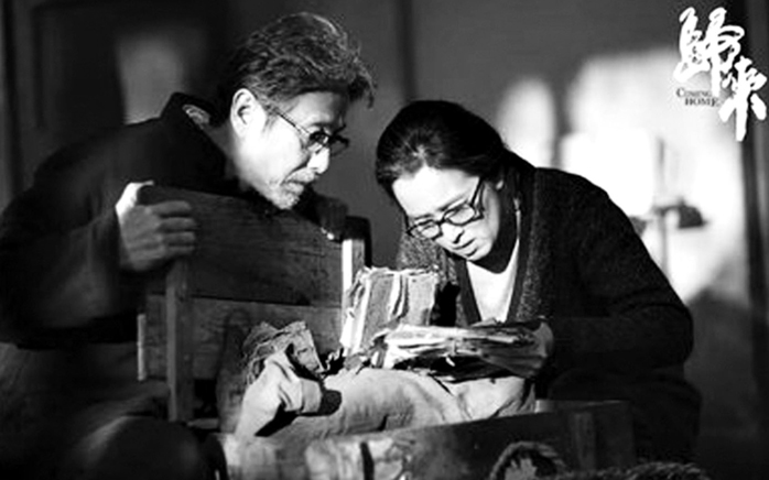 《归来》的故事可以表达很多主题:政治环境对人物命运的拨弄,亲人之间的背信弃义,爱情的坚贞不屈、至死不渝……在影片的结尾,导演用一个“白发苍苍的陆焉识推着冯婉瑜在漫天大雪中等待‘陆焉识’归来”的定格画面给出了他对主题的回答。虽然这个结果看起来特别无奈,但观众心里是温暖和充满力量的,这个力量来自陆焉识,面对命运的苦难,这个男人没有怨天尤人,没有愤世嫉俗,而是以一种超乎常人的豁达、坚韧,一次次积极地面对问题、解决问题。没有谁永远是一帆风顺的,该如何面对苦难和坎坷大概就是影片提出的主要问题,而导演通过主人公陆焉识的所作所为给出了答案(图2-5)。明确了主题,片段的结构也就清晰起来,即陆焉识的困境、他为了解决问题所采取的手段以及最终的结局。片段表演的具体内容如下:
