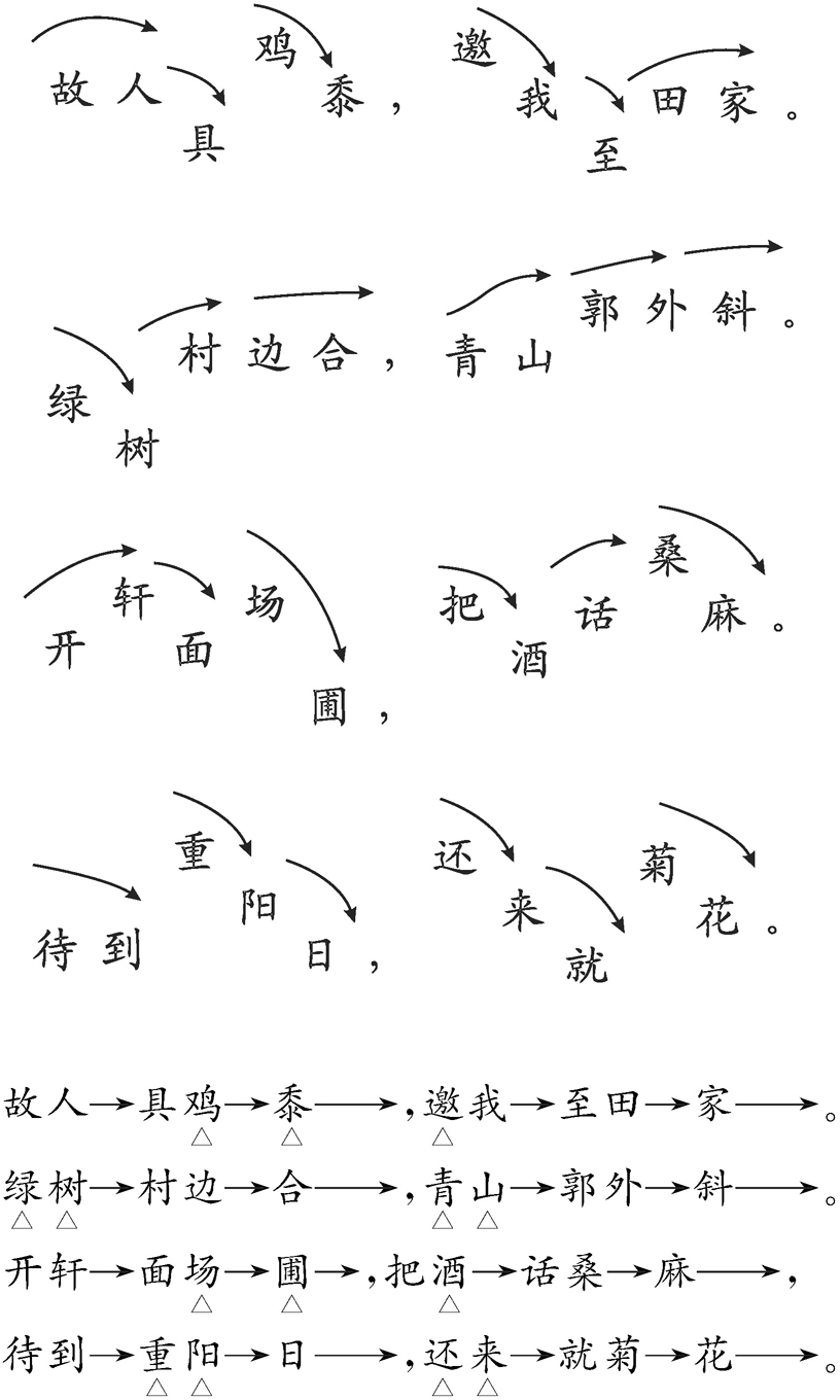②具鸡黍:“具”下行,并无特别准备之意。“鸡黍”,稍扬再降,平常饭菜而已。