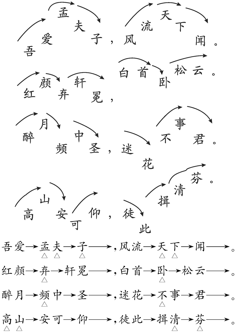 ②孟夫子:“孟”字高起,稍强、稍长。“夫子”二字顺势而下,“子”字全上声,缓收。
