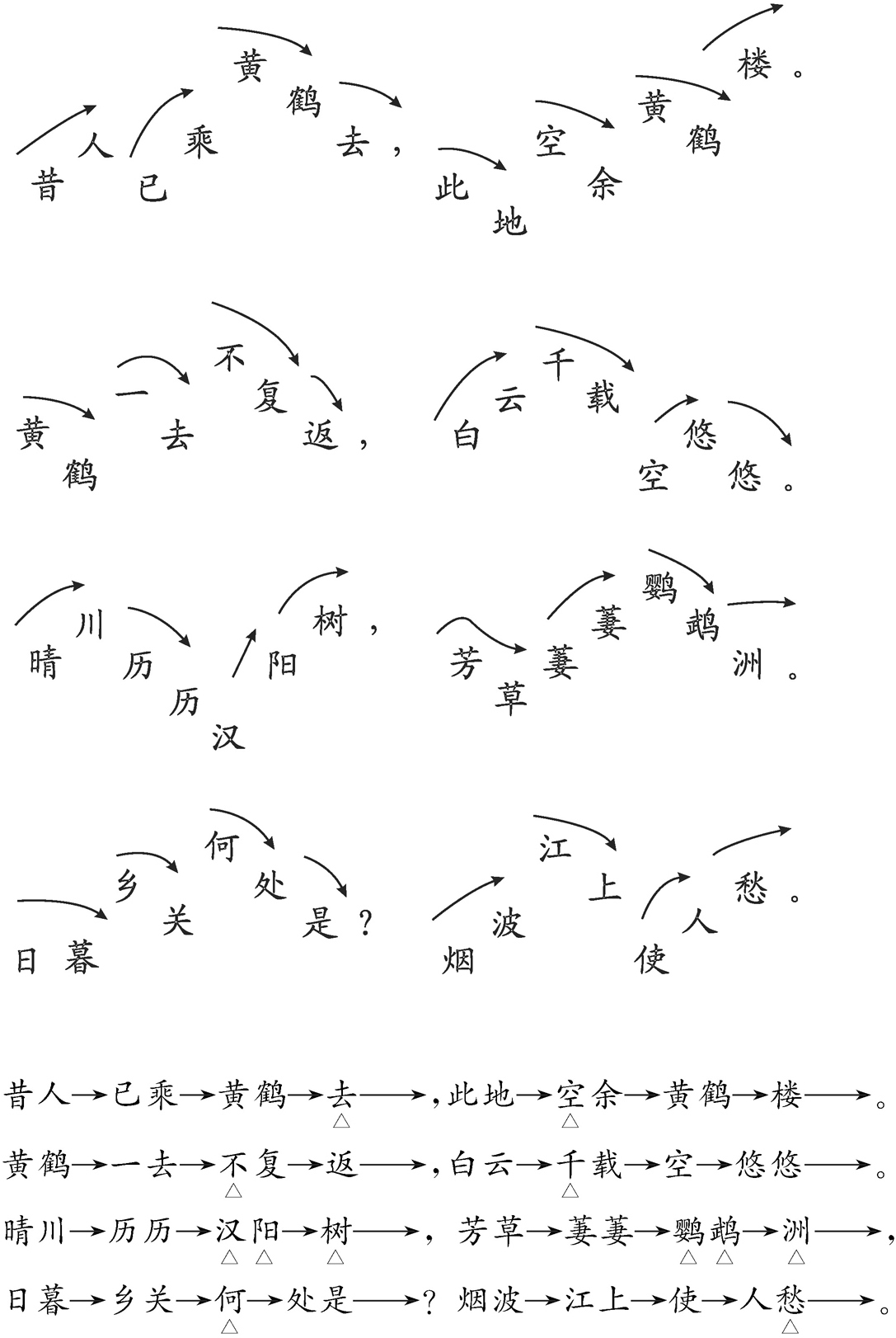 ①前两联,三用“黄鹤”,两用“空”,“空悠悠”为三字平声,少对仗,欠格律,却带有浓郁的古体诗风格。朗诵时要特别强调感慨万千的心境,不必拘泥平仄。重复字词融入语气中,自然不会显出不合。