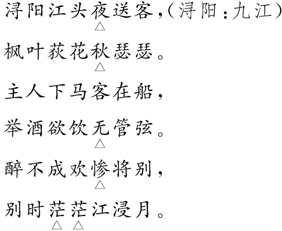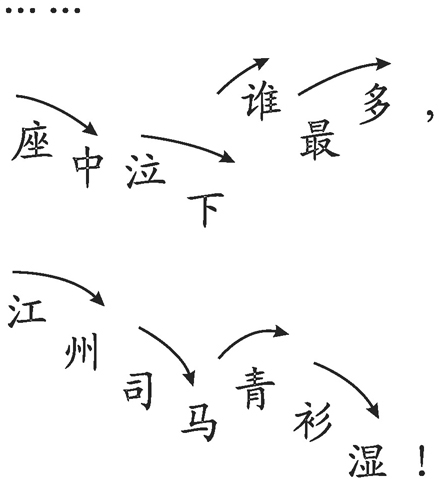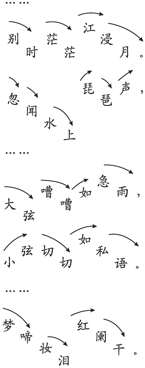这首诗以两个人物“同是天涯沦落人”为纬,以“琵琶”为经,织就了一幅“平生不得志”的枫叶荻花秋月白的长卷,诗中有画,画中有乐,乐中有情,情中有泪。“琵琶女”是封建社会底层人物的代表,诗人是怀才不遇、被贬离京的知识分子的代表。身世不同,处境相似,强化了感情上的共鸣,表达了他们对社会的共识。而这一切,均以音乐形象、内心怨恨的描述为艺术表现,达到了独特的艺术效果。朗诵时,要舒缓地营造氛围、表现心境,凝重地展现乐曲的隐喻、感悟。用多层次的转折、具象化的想象,引发起伏的心潮,丰富抑扬的语感。着重拓开词语,制造清冷的语境,轻巧喷弹以衬托琵琶的音韵。不必高声倾诉,不必哽咽述说。