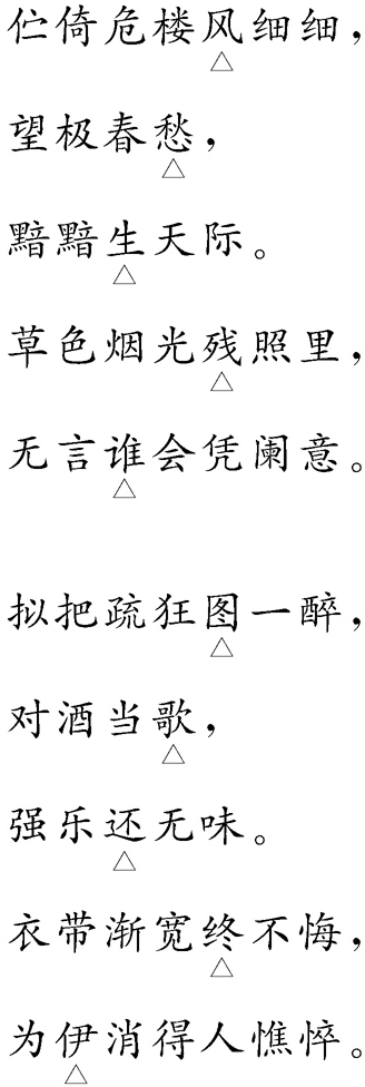 作者以漂泊异乡的心境同怀念心中之人的思绪结合到一起,登楼极望,对酒强乐,却更加重了向往之情,而无法解脱。最后两句突兀道破,令人越觉情深义重。朗诵时应把全部景物和寄托放开抒发而令人不知所终,到最后一个“伊”字,语出惊人:原来如此!而“伊”字竟又可代国、代家、代理想……
